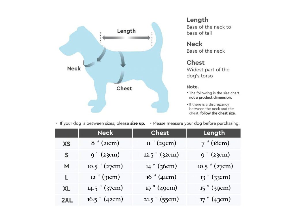 Měření psa pro výběr správné velikosti psího oblečku není nic složitého, zabere to sotva pár minut a ušetříte si čas i starosti s výměnou oblečku. Ale nebojte se, oblečky koupené u nás vám rádi a obratem vyměníme za správnou velikost. Postup najdete zde nebo nám před koupí oblečku napište, rádi vám s výběrem správné velikosti poradíme.