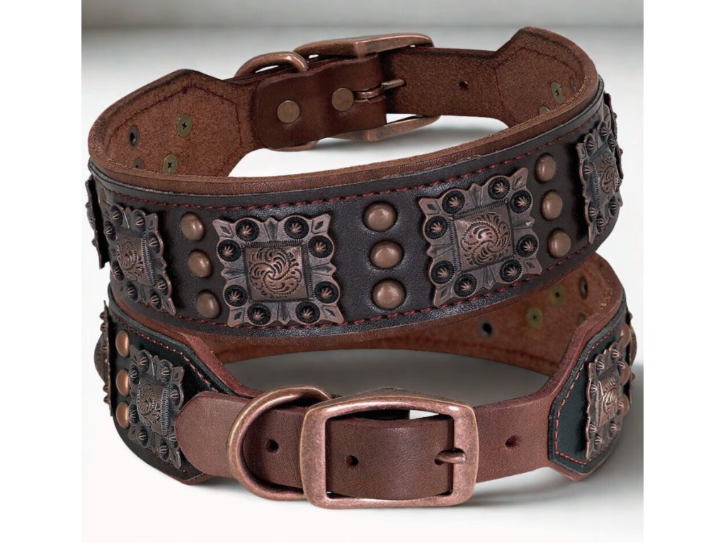 Kožený obojek pro malé, střední i velká plemena. Vhodný pro pitbully, stafordy, dobrmany apod.