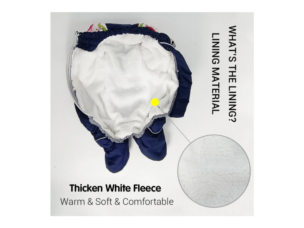 - Materiál: Voděodolný polyester, fleece a bavlna