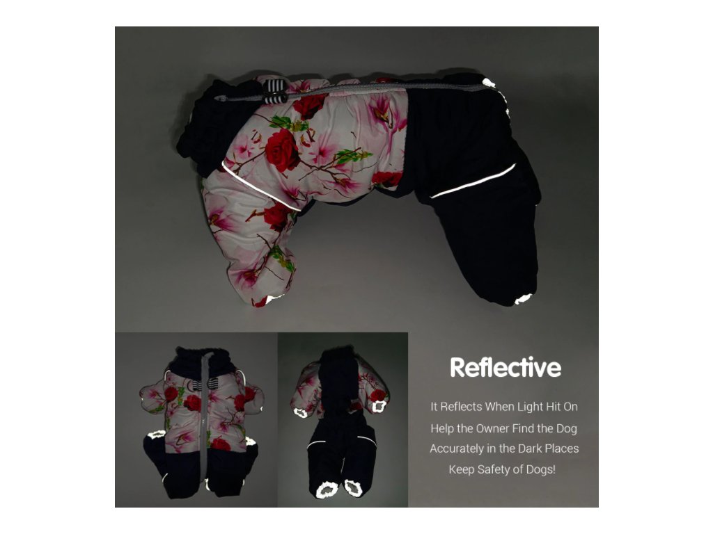 Zimní zateplený overal se zakrytým břichem pro feny s reflexními prvky
