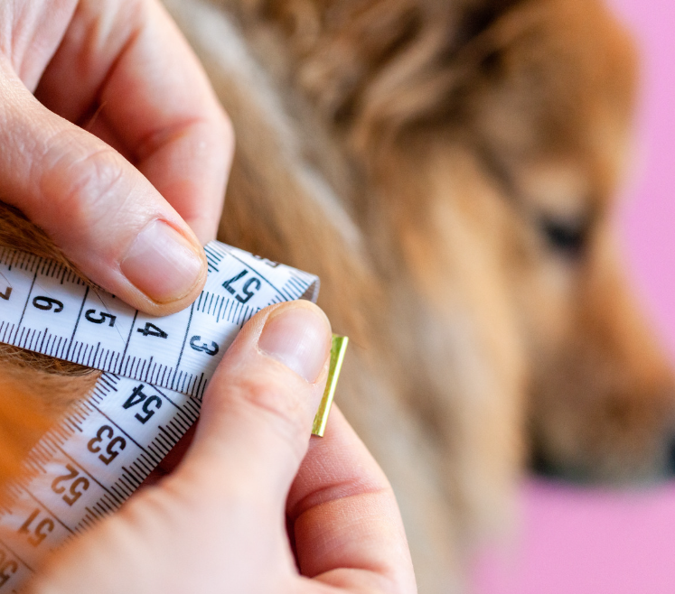 Obvod krku pejska měříme v místě, kde pes obojek nosí. Vezmeme krejčovský metr, ovineme ho psovi kolem krku a máme jeho míru. Obvykle se uvádí, že by se pod obojek měli dát zasunout dva prsty.