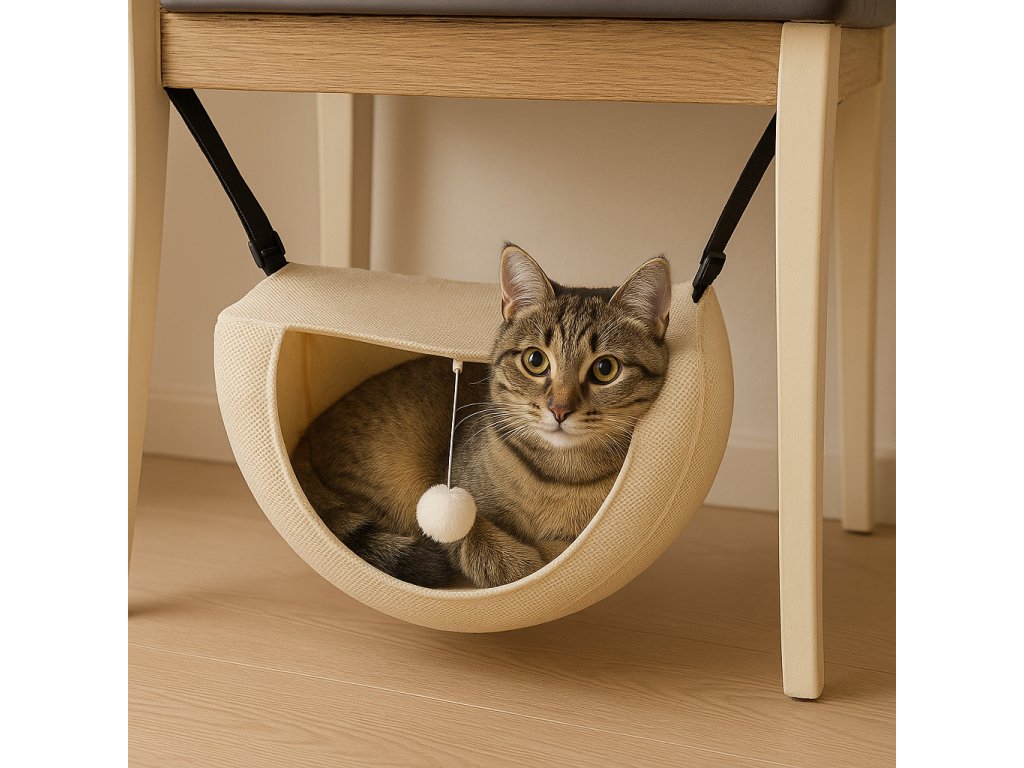Závěsný pelíšek pro kočky z odolného nylonu představuje ideální kombinaci pohodlí, funkčnosti a moderního designu. Lze jej snadno připevnit pod židli, stůl nebo do klece, čímž vytvoříte útulné a bezpečné útočiště pro vaši kočku i další menší mazlíčky.