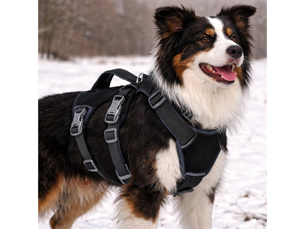 Trekingový a turistický postroj pro střední až velké psy spojuje pohodlí, bezpečnost a odolnost. Díky reflexním prvkům funguje jako reflexní postroj pro psa, nastavitelná konstrukce z něj dělá univerzální řešení i pro štěňata. Robustní materiál, ergonomický střih a praktická rukojeť z něj činí jeden z nejlepších postrojů pro psy – ideální pro každodenní venčení, výcvik i náročné túry.