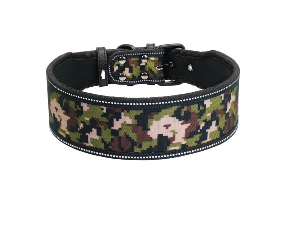 SET: Široký vzorovaný obojek pro psa s reflexními prvky a vodítko VOJENSKÝ - velikost M
